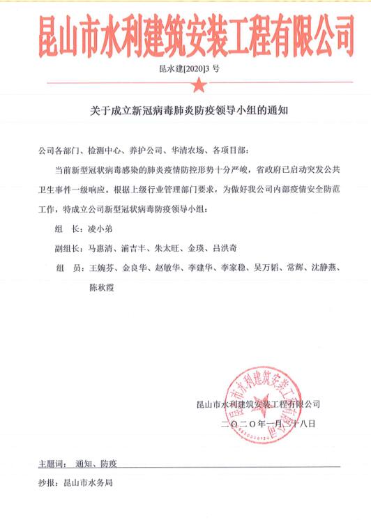 關于成立新冠病毒肺炎防疫領導小組的通知