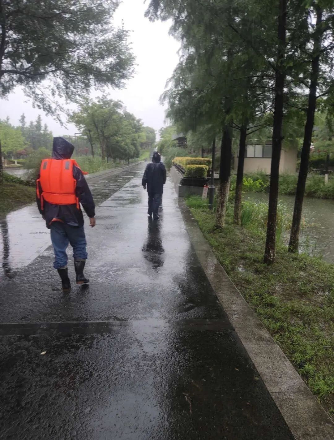 水建公司黨支部防汛突擊隊再次行動,對陽澄湖公園、費爾蒙酒店及蓮湖公園等多地組織防汛排澇,安排黨員定點巡堤護堤。