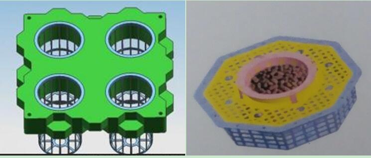 利用熱熔機(jī)將PPR直管燙接成兩個(gè)圓,大圓直徑4m,小圓直徑2m,將大圓與小圓用正三通連接。用扎帶或者繩子連接已拼好的浮床單體和小圓。