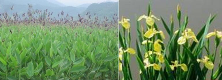 常用的挺水植物(再力花、黃菖蒲)