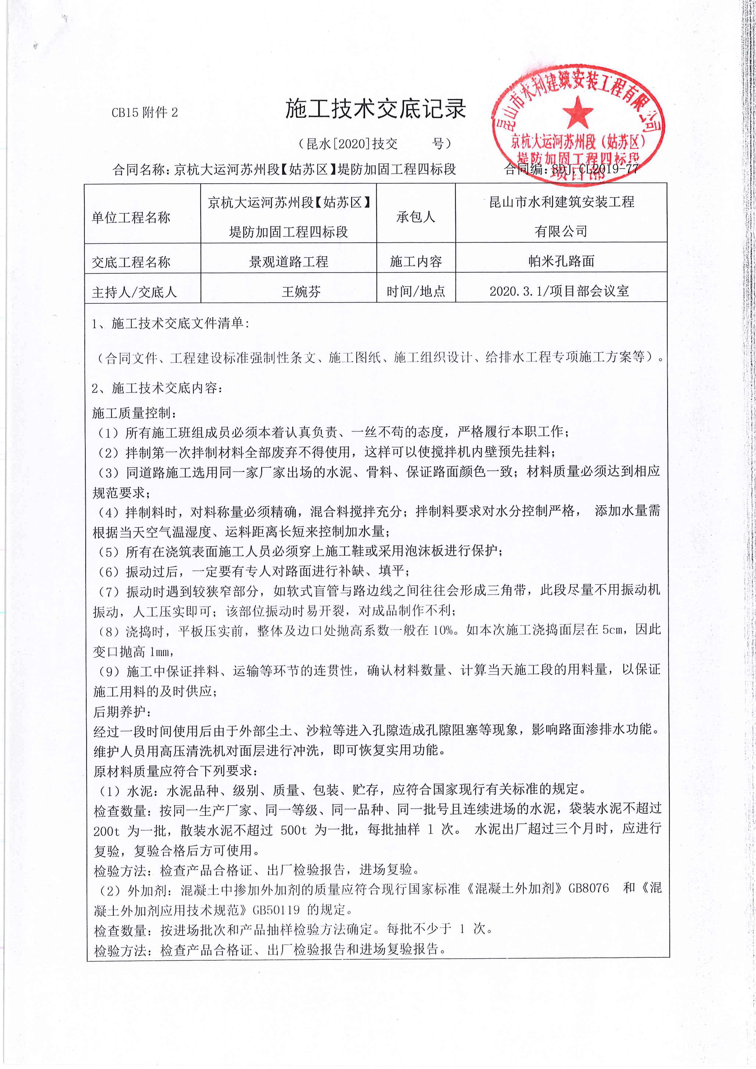 [理由一]:京杭大運(yùn)河蘇州段堤防加固工程以建成集防洪安全、環(huán)境整治、遺產(chǎn)保護(hù)、健康休閑、文化旅游功能“五位一體”的生態(tài)綠廊為目標(biāo),因此必須保證帕米孔藝術(shù)路面施工質(zhì)量。