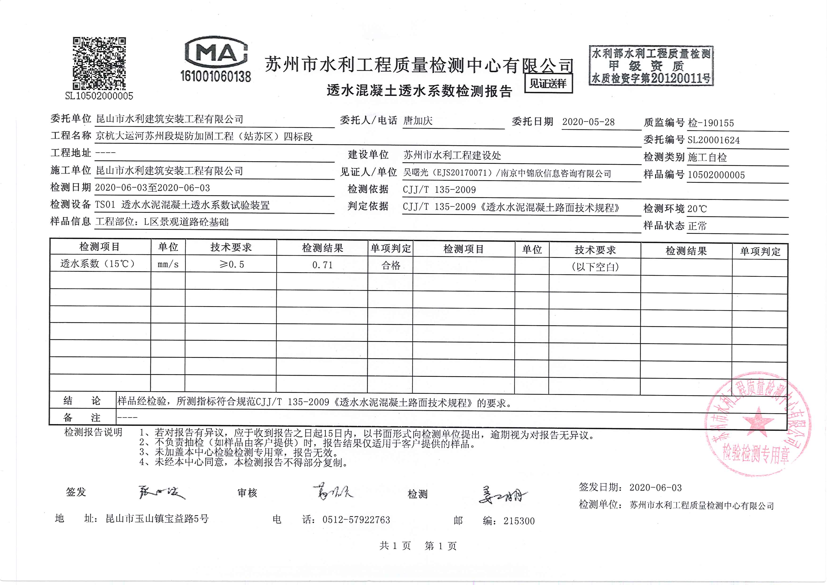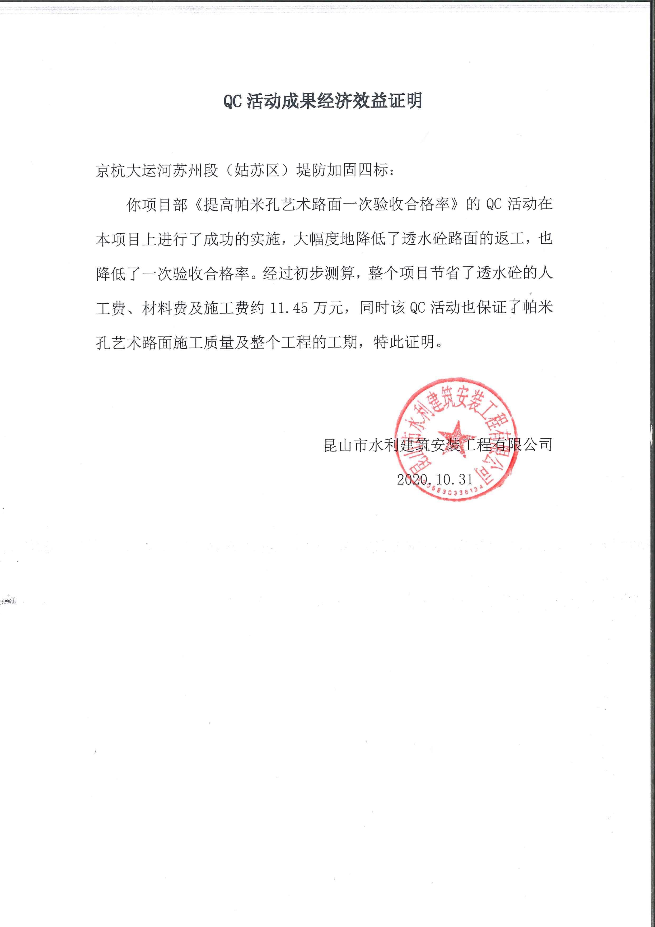 帕米孔藝術(shù)路面透水混凝土施工過(guò)程中,公司給予小組活動(dòng)充分的肯定和大力支持,本小組“帕米孔藝術(shù)路面施工質(zhì)量控制”QC活動(dòng)為我公司在蘇州市姑蘇區(qū)贏得了良好的質(zhì)量口碑,本次QC活動(dòng)在很大程度上改善了帕米孔藝術(shù)路面的質(zhì)量,為實(shí)現(xiàn)京杭大運(yùn)河堤防加固工程姑蘇段創(chuàng)優(yōu)目標(biāo)打下基礎(chǔ),為評(píng)選江蘇省水利工程文明工地創(chuàng)造了有利條件。在工程完工后,一次性驗(yàn)收合格,觀感評(píng)定達(dá)到“良”,得到了建設(shè)、監(jiān)理單位和上級(jí)有關(guān)部門的一致好評(píng),同時(shí)也為我公司在以后類似工程的施工中積累了經(jīng)驗(yàn)。