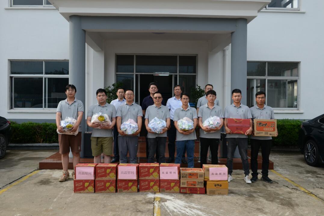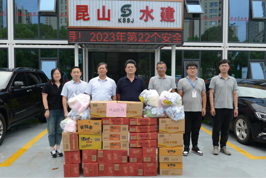 本月10日,公司領導攜帶多種防暑降溫物資前往各工地現(xiàn)場,進行高溫慰問活動。在即將到來的三伏天中,各項目部要合理安排工作內容,以人為本,適當調節(jié)工作與休息時間,確保工程按計劃進度進行。