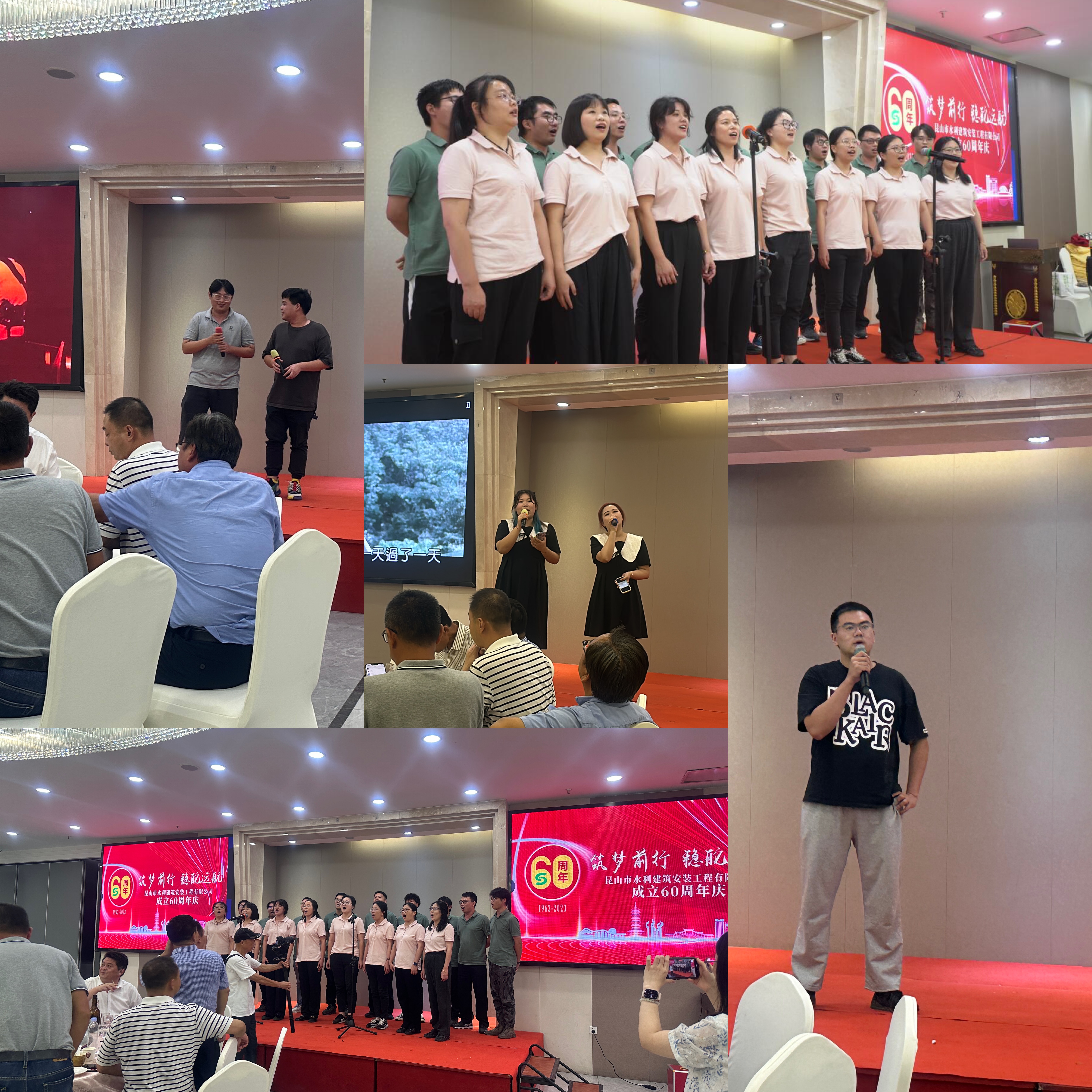 會(huì)后全體職工舉行了聯(lián)歡晚會(huì),公司各部門、各項(xiàng)目部進(jìn)行了才藝表演,晚會(huì)氣氛熱烈,歡聚一堂,將60周年慶的喜悅氛圍推向高潮。