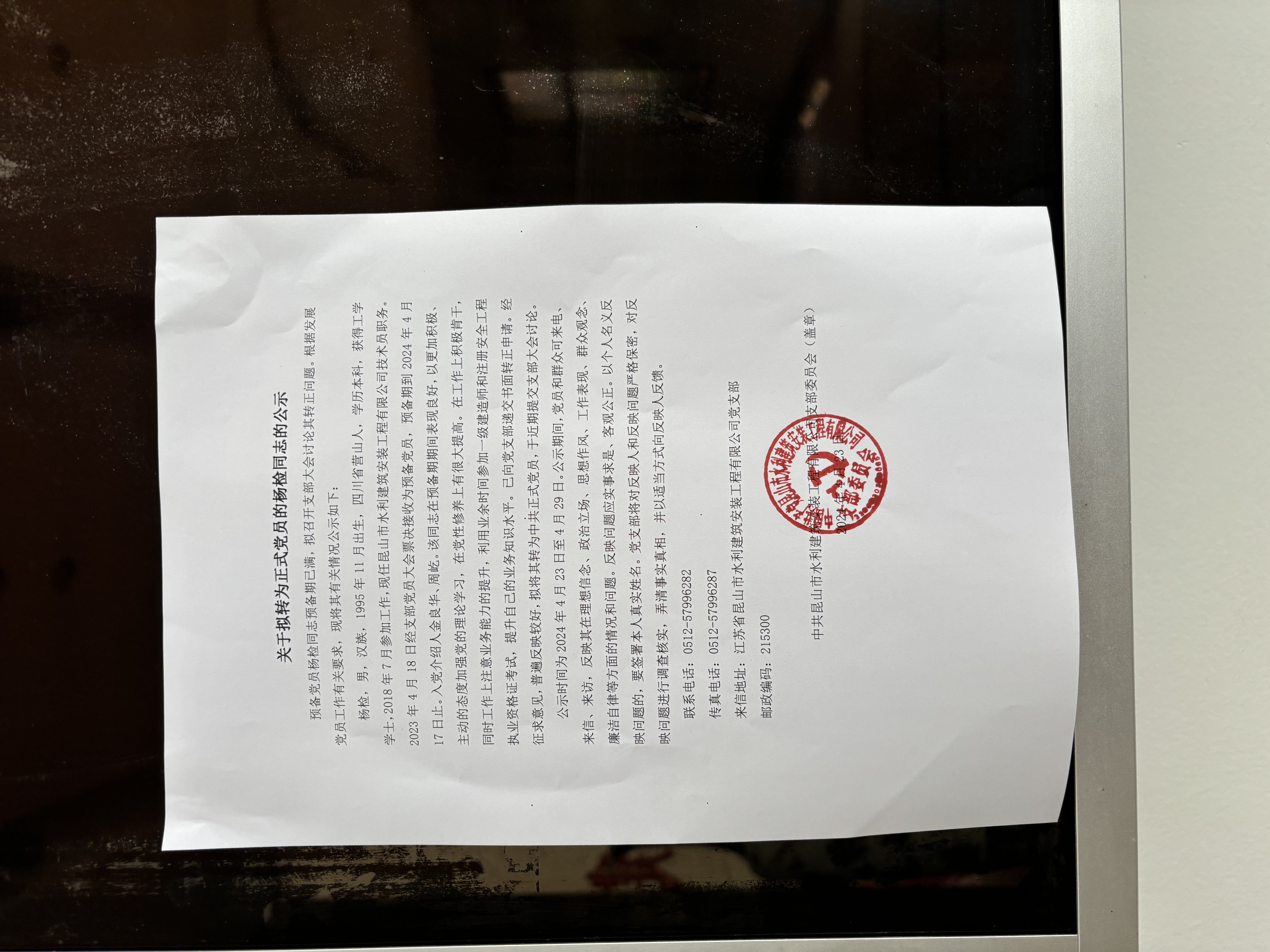 關(guān)于擬轉(zhuǎn)為正式黨員的楊檢同志的公示