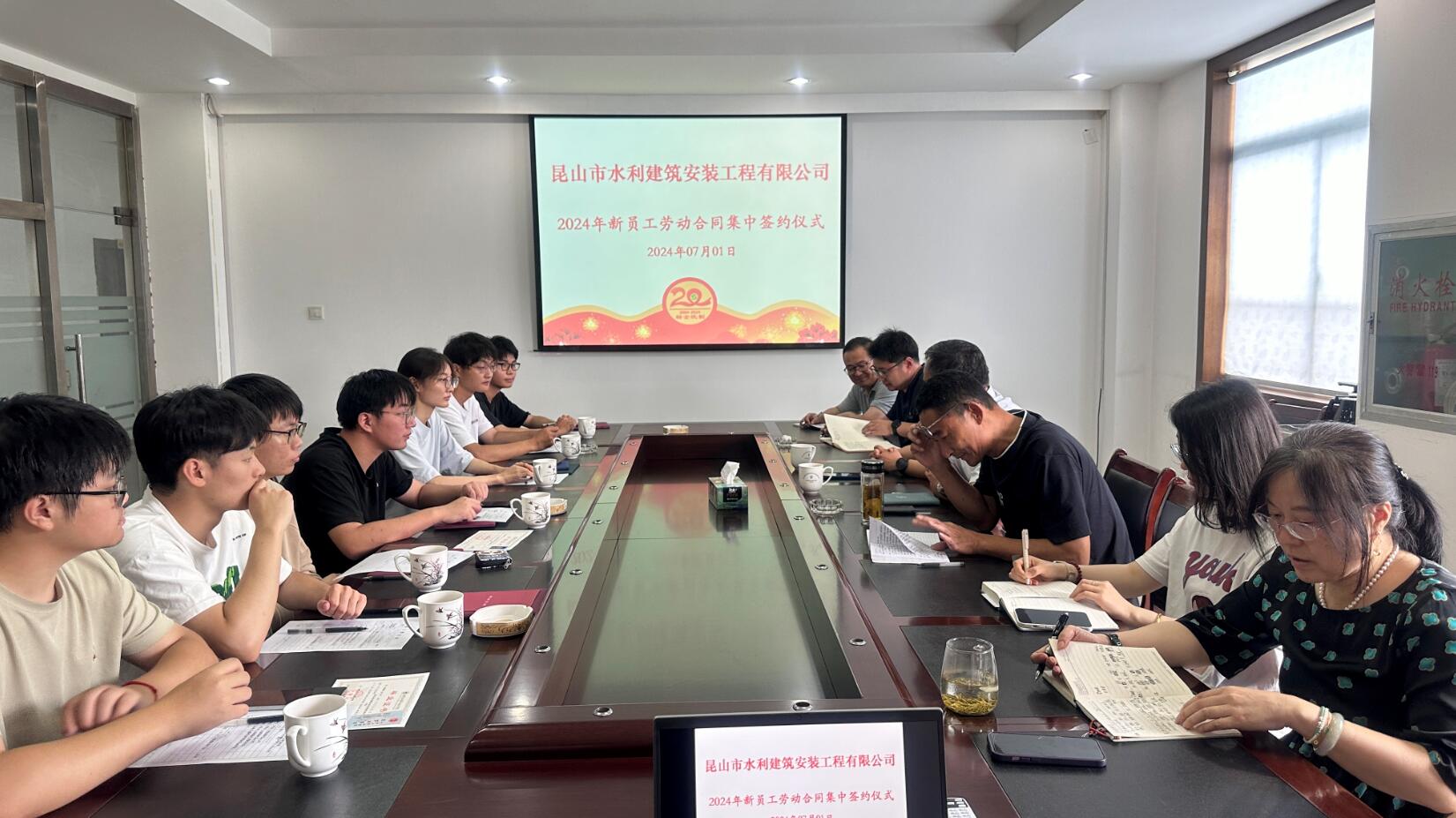 2024年7月1日,我公司舉行了新員工勞動合同集中簽約儀式。會上公司各領(lǐng)導(dǎo)及部門負責(zé)人向新進員工表示熱烈歡迎,并簡要的介紹了公司各部門工作要求,應(yīng)屆畢業(yè)生們自今天起便完成了從學(xué)生到職場人的轉(zhuǎn)換,期待他們在水利事業(yè)中不斷發(fā)光發(fā)熱,貢獻自己的一份力量!