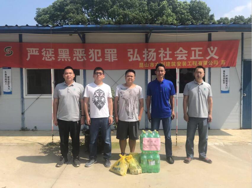 2019年07月25日,昆山水建公司組織了防暑降溫“送清涼”活動,公司采購了大批夏季防暑降溫用品,在高溫來臨前第一時間送到項目部員工手上。公司領導要求各項目經(jīng)理按照相關文件要求,組織好高溫環(huán)境下的施工管理工作,確保員工的健康安全。