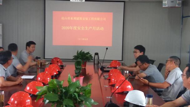 2020年5月23日公司組織各項目部在陸涇河泵閘及水立交工程二標項目部會議室進行2020年度安全生產(chǎn)月活動會議