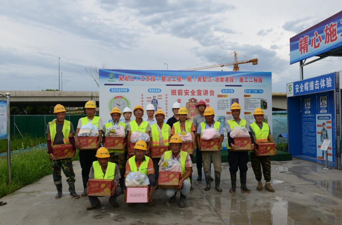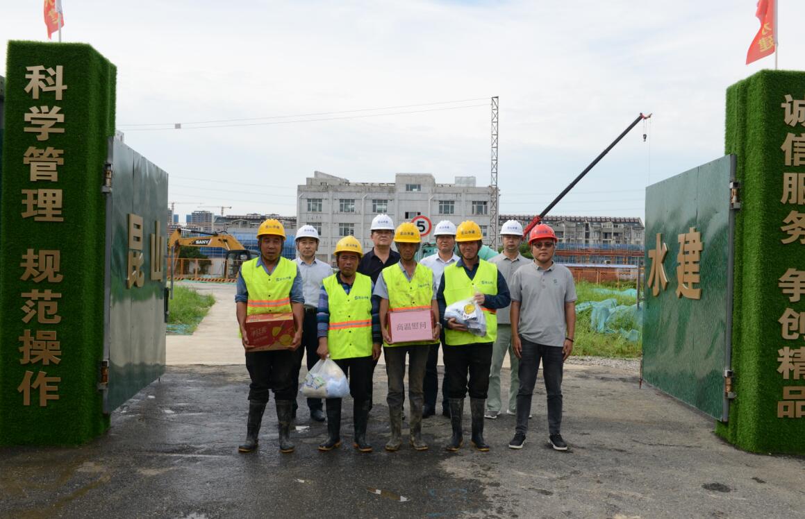 本月10日,公司領導攜帶多種防暑降溫物資前往各工地現(xiàn)場,進行高溫慰問活動。在即將到來的三伏天中,各項目部要合理安排工作內容,以人為本,適當調節(jié)工作與休息時間,確保工程按計劃進度進行。